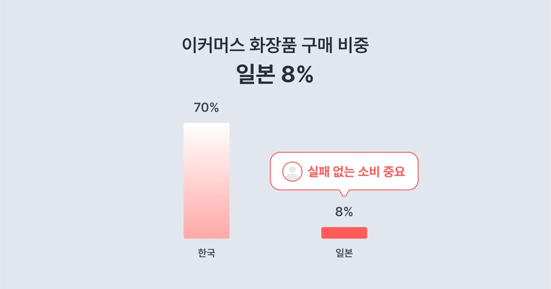 한국은 세계에서 온라인으로 화장품을 가장 많이 사는 나라 중 하나입니다. 구매자의 60~70%가 온라인에서 결제를 마치죠. 반면, 일본은 겨우 8% 수준입니다. 단순히 디지털 전환이 느린 게 아닙니다.
